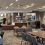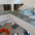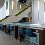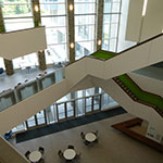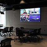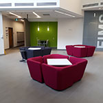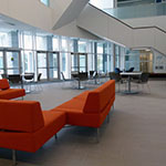 The FIMS community moved into the FIMS & Nursing Building in December 2016, while the building opened for general use in September 2017. Shared with the Faculty of Health Sciences' Nursing program, the 130,000 sq. ft. building sits on the corner of Huron Drive and Lambton Drive. The space includes media studios, flex space, an expanded FIMS Graduate Library, and common areas for gathering, studying and interacting, with a premium on seating and break-out areas for students. Natural light is also an important feature, with large walls of windows found on all sides of the building.